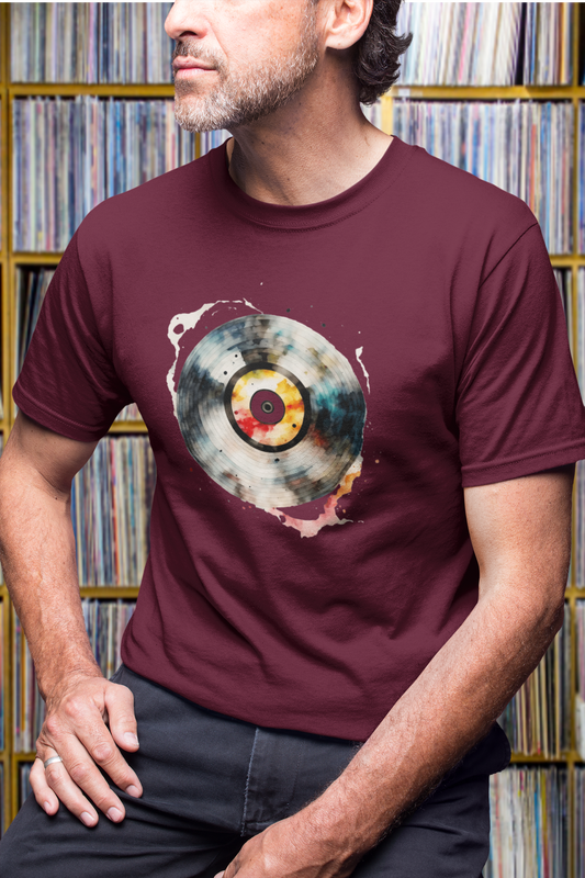 Unisex Spinning Melodies: Abstract Vinyl on Fashion Tee