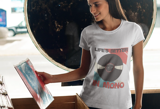 Spinning Melodies: Abstract Vinyl on Fashion Tee