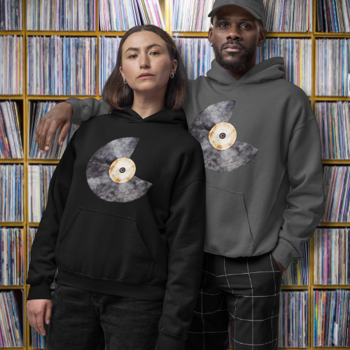 This is our one of a kind broken record vinyl hoodie. Who knew that the softest hoodie you'll ever own comes with such a cool design. You won't regret buying this classic streetwear piece of apparel with a convenient pouch pocket and warm hood for chilly evenings.